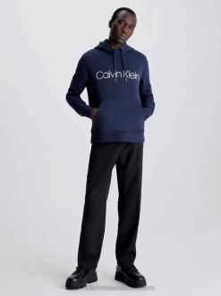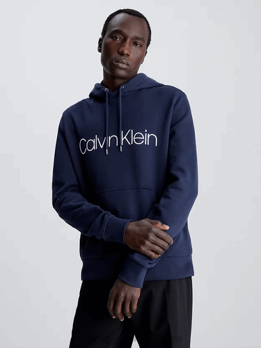 F64Z4954 Navy Men Calvin Klein Organic Cotton Logo Hoodie