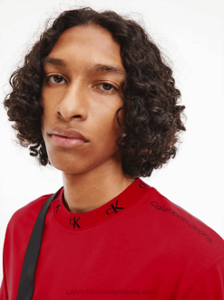 F64Z5005 Candy Apple Men Calvin Klein Organic Cotton Logo Collar T-shirt