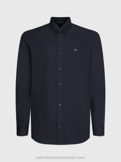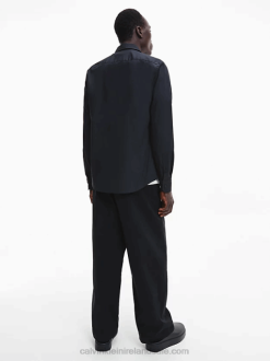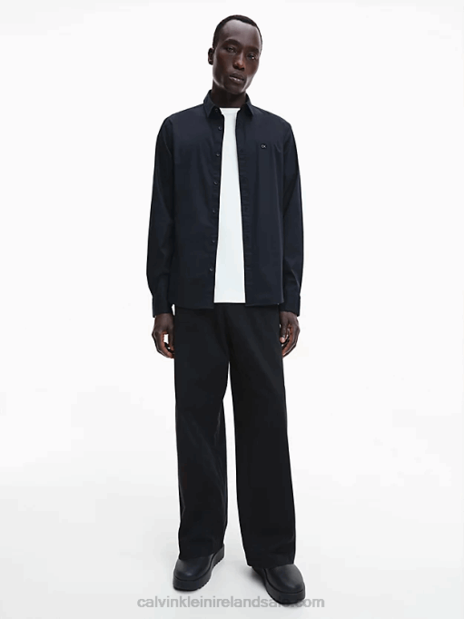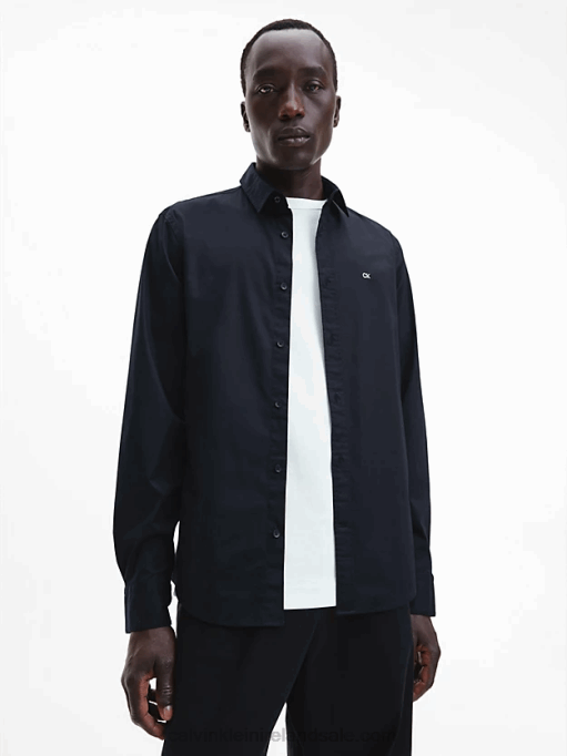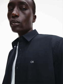 F64Z5011 Black Men Calvin Klein Slim Poplin Stretch Shirt