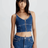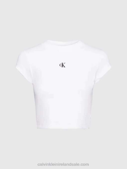 F64Z51 Bright White Women Calvin Klein Slim Cropped Ribbed T-shirt