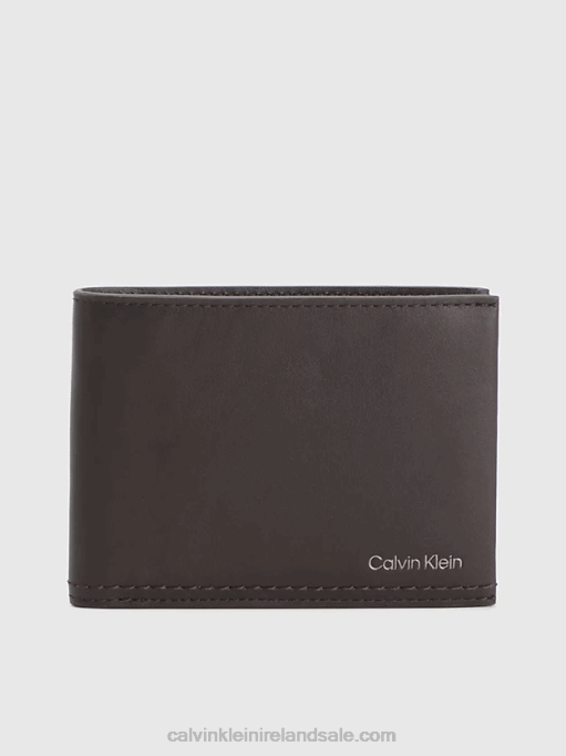 F64Z5137 Dark Brown Men Calvin Klein Leather RFID Billfold Wallet