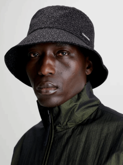 F64Z5158 Black Classic Mono Men Calvin Klein Organic Cotton Logo Bucket Hat