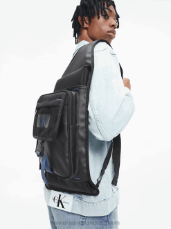 F64Z73 Black Women Calvin Klein Seersucker Stretch Cut Out Top