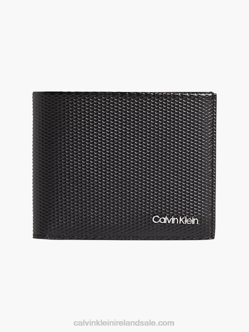 F64Z5299 Black Men Calvin Klein Embossed Leather Trifold Wallet