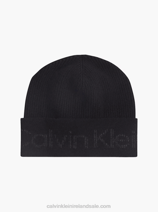 F64Z5362 Black Men Calvin Klein Recycled Logo Beanie