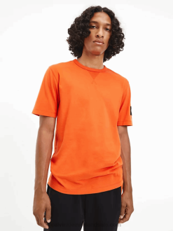 F64Z4993 Coral Orange Men Calvin Klein Monogram Badge T-shirt
