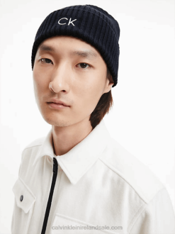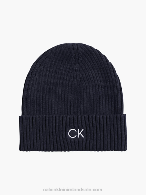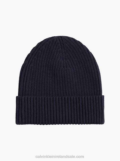 F64Z5368 Navy Men Calvin Klein Organic Cotton Blend Beanie