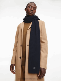 F64Z5387 Navy Men Calvin Klein Organic Cotton Blend Scarf