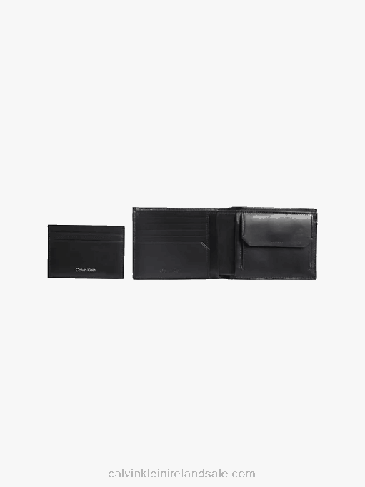 F64Z5156 Black Men Calvin Klein Leather RFID Wallet with Coin Pouch