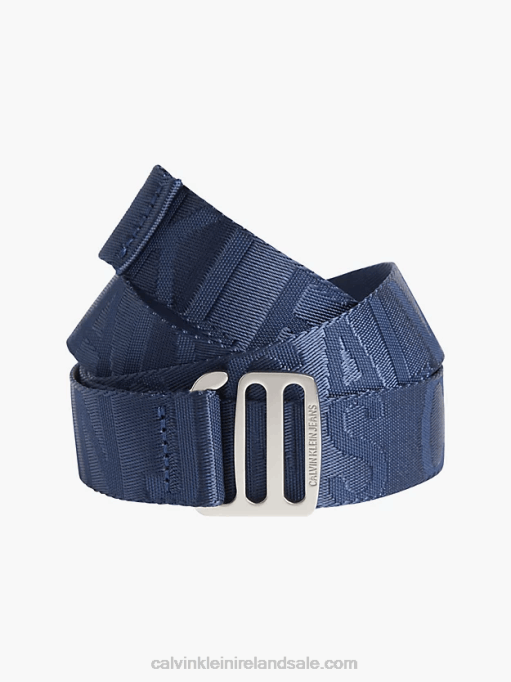 F64Z5428 Naval Blue Men Calvin Klein Logo Jacquard Belt