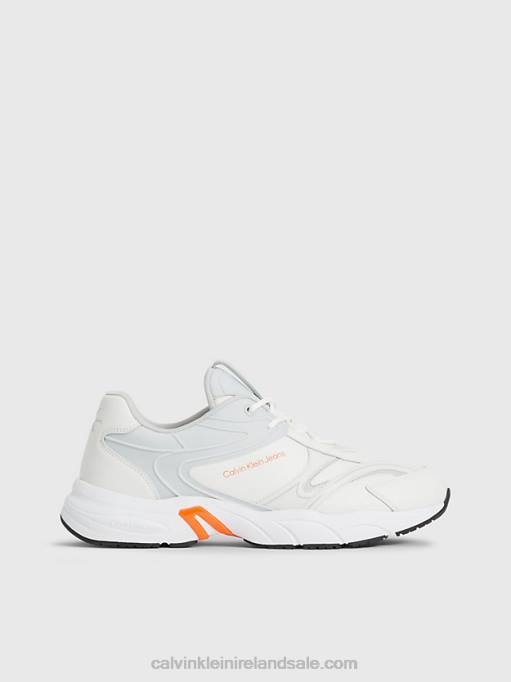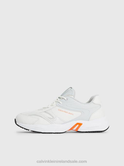 F64Z5464 White/Oyster Mushroom/Firecracker Men Calvin Klein Leather Trainers