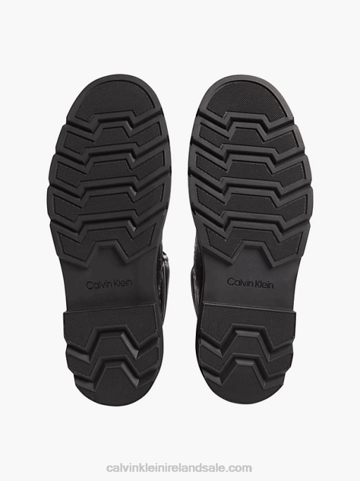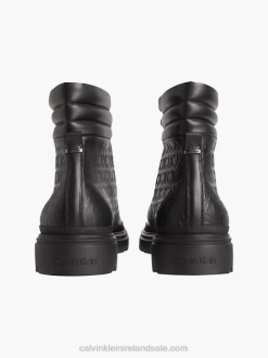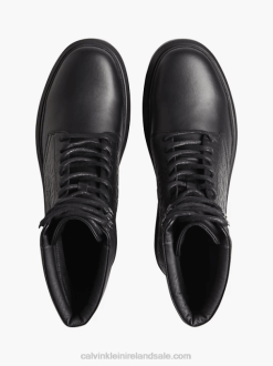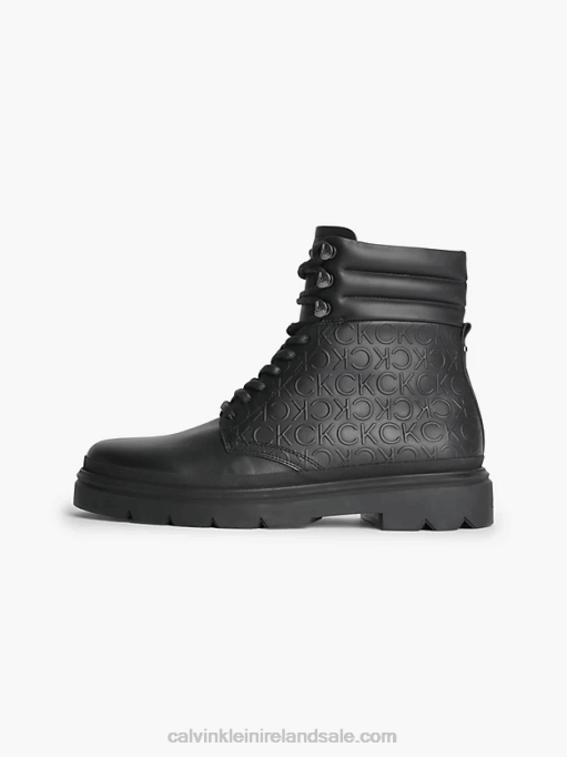 F64Z5485 Black Seasonal Mono Men Calvin Klein Leather Logo Boots