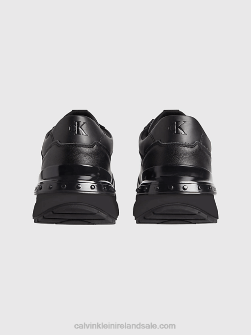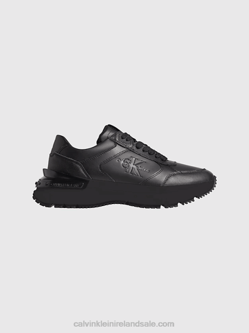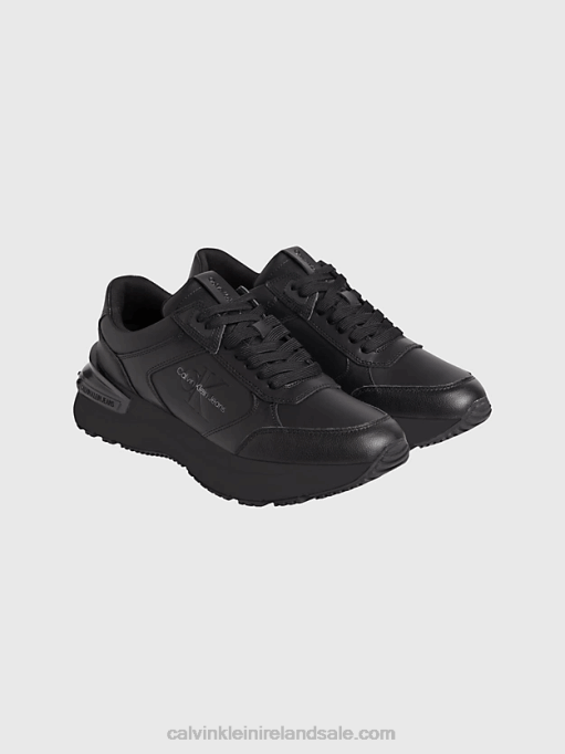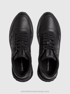 F64Z5493 Triple Black Men Calvin Klein Leather Chunky Trainers