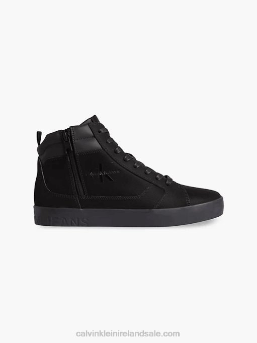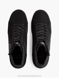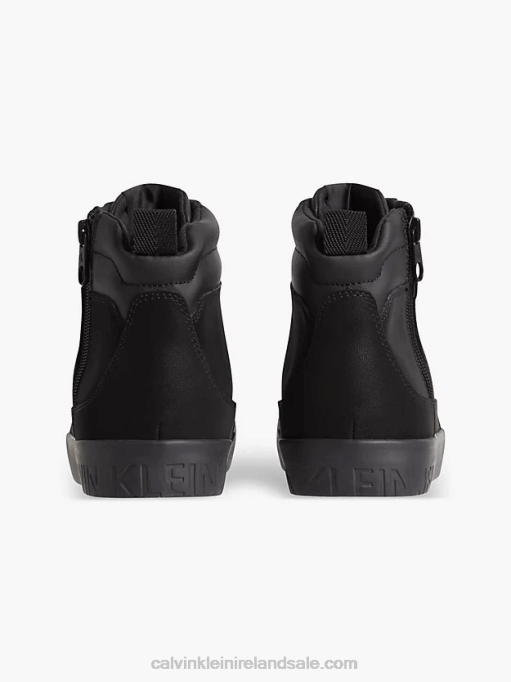 F64Z5498 Triple Black Men Calvin Klein Leather High-Top Trainers