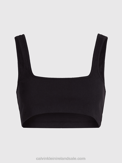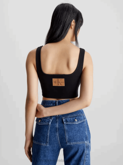 F64Z47 Black Women Calvin Klein Plus Size Ribbed Monogram Tank Dress