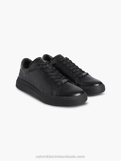 F64Z5542 Fashion Black Men Calvin Klein Leather Logo Trainers