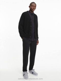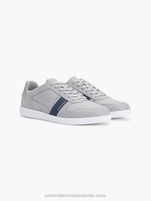 F64Z5570 Grey/Navy Men Calvin Klein Leather and Recycled Nylon Trainers