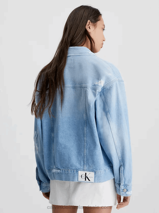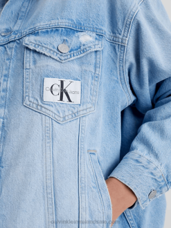 F64Z169 Denim Dark Women Calvin Klein Cropped Denim Shirt Jacket