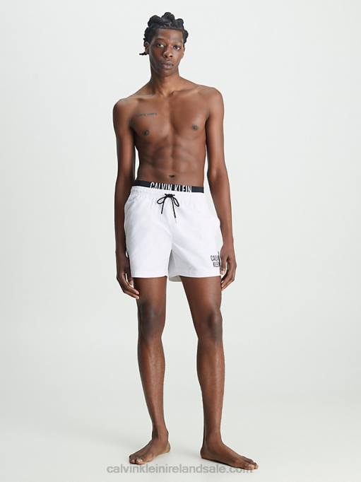 F64Z5629 Pvh Classic White Men Calvin Klein Double Waistband Swim Shorts