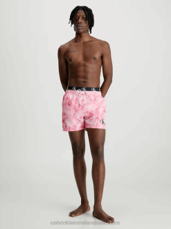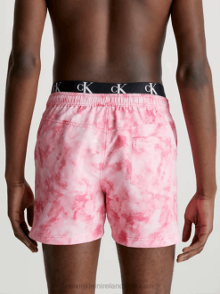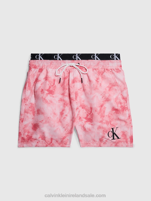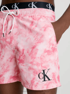 F64Z5635 Tie Dye Pink Aop Men Calvin Klein Double Waistband Swim Shorts