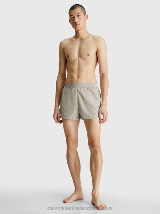 F64Z5638 French Taupe Men Calvin Klein Logo Waistband Swim Shorts