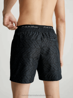 F64Z5639 Zigzag Logo Grey Aop Men Calvin Klein Double Waistband Swim Shorts