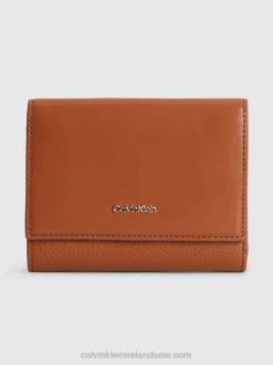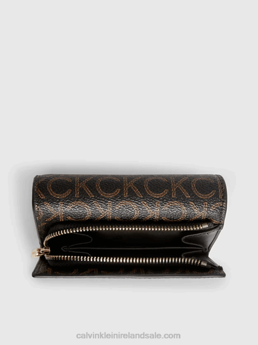 F64Z569 Brown Mono Women Calvin Klein Small Recycled RFID Trifold Logo Wallet