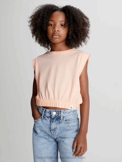 F64Z5734 Fresh Cantaloupe Kids Calvin Klein Organic Cotton Cap Sleeve Top