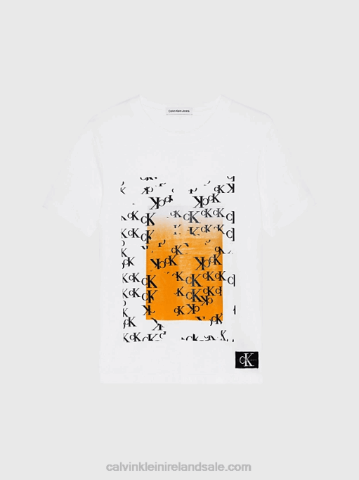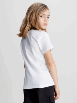 F64Z5756 Bright White Kids Calvin Klein Organic Cotton Logo T-shirt