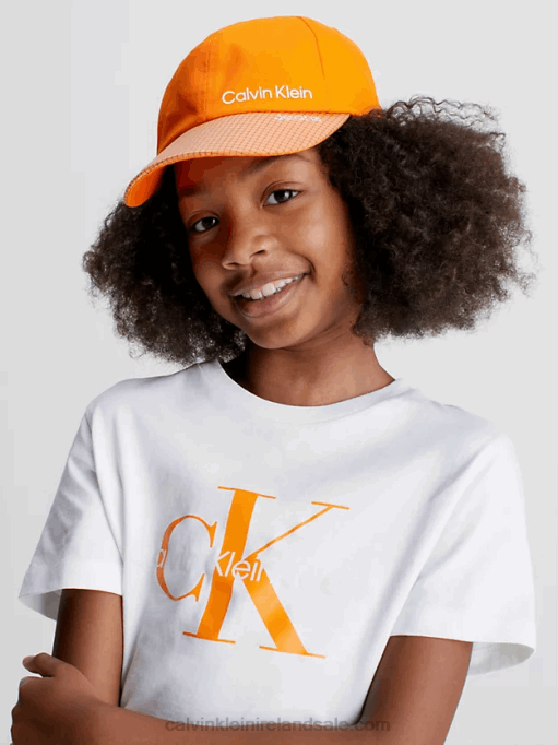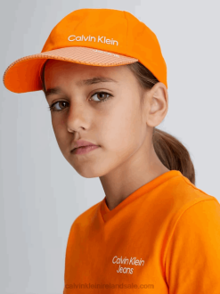 F64Z5772 Vibrant Orange Kids Calvin Klein Logo Cap