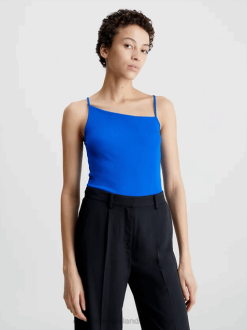 F64Z898 Ultra Blue Women Calvin Klein Slim Halter Low Back Dress