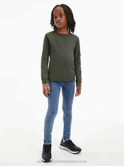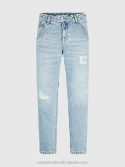 F64Z5806 Chalky Blue Destroy Kids Calvin Klein Barrel Leg Jeans