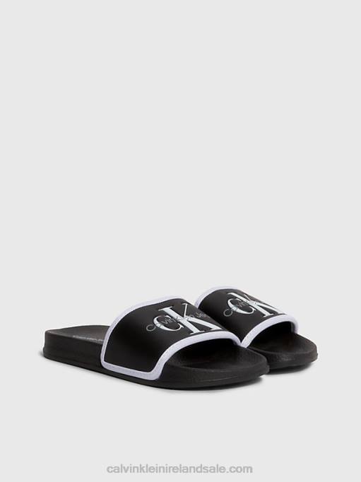 F64Z5834 Black/White Kids Calvin Klein Logo Sliders