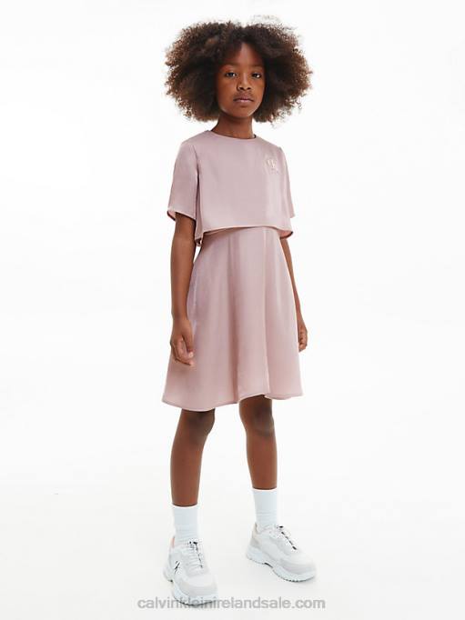 F64Z6007 Creole Pink Kids Calvin Klein Slim Flared Milano Dress