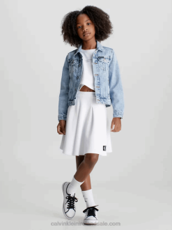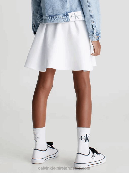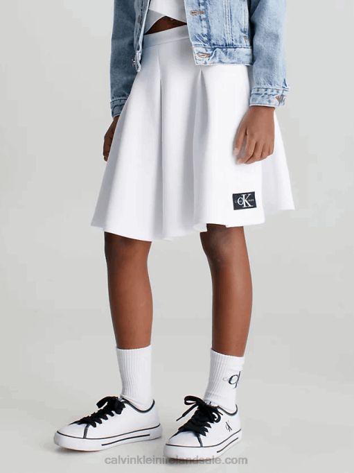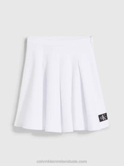 F64Z5888 Bright White Kids Calvin Klein Pique Pleated Skirt