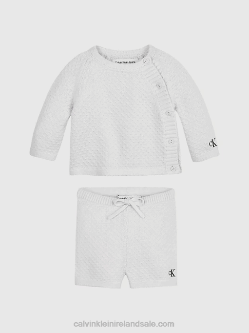 This newborn jumper and shorts set is crafted with 100% organic cotton.