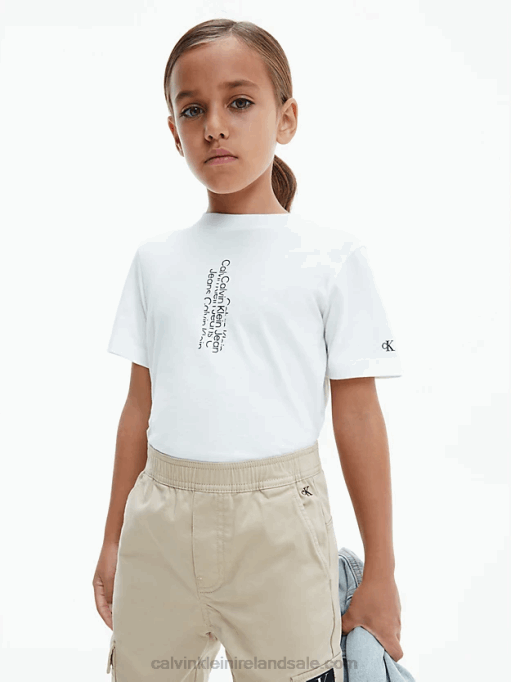 F64Z608 Bright White Women Calvin Klein Cropped Logo T-shirt