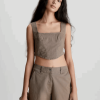 F64Z27 Denim Medium Women Calvin Klein Denim Zip Up Bralette Top