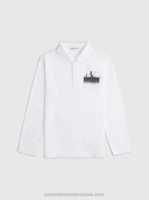 F64Z6047 Bright White Kids Calvin Klein Long Sleeve Polo Shirt