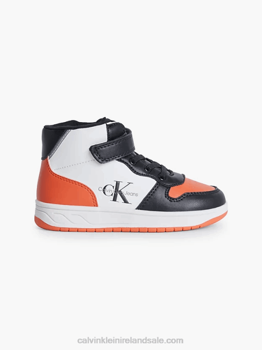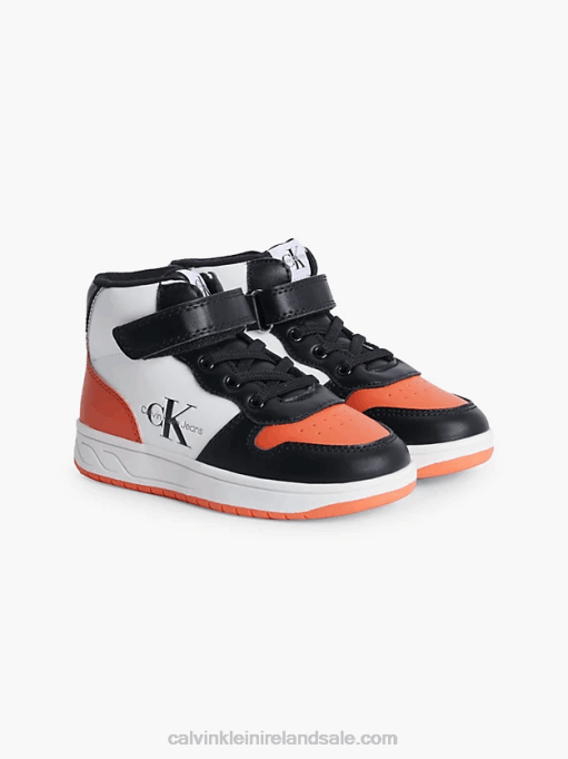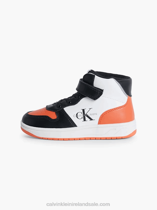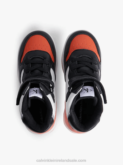 F64Z6052 Black/Orange/White Kids Calvin Klein Recycled High-Top Trainers
