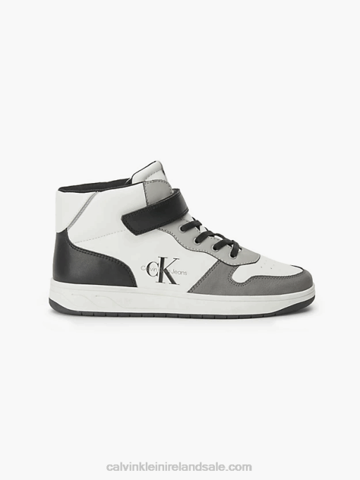 F64Z6053 Grey/White/Black Kids Calvin Klein Recycled High-Top Trainers