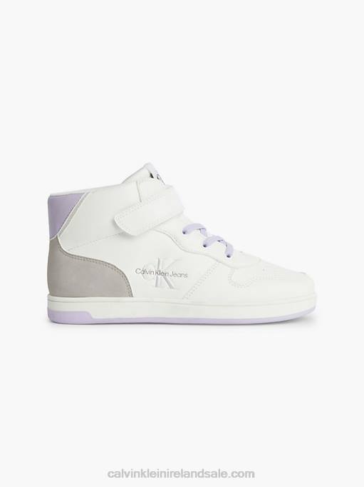 F64Z6060 White/Lilac Kids Calvin Klein Recycled High-Top Trainers