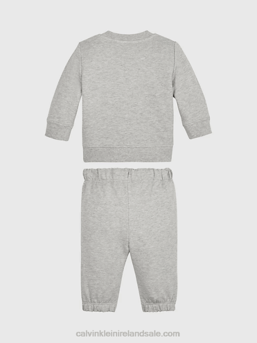 F64Z6344 Light Grey Heather Kids Calvin Klein Organic Cotton Badge Hoodie