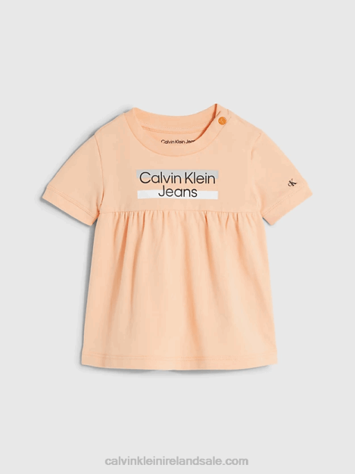 F64Z6498 Fresh Cantaloupe Kids Calvin Klein Organic Cotton Logo Sweatshirt