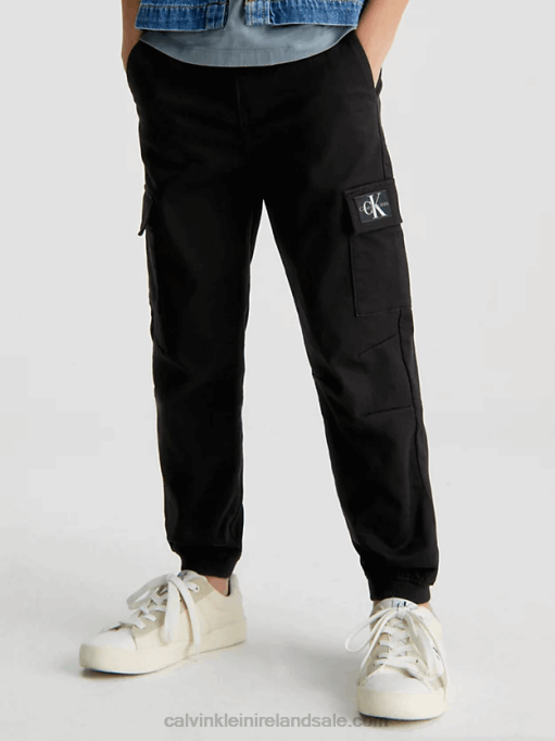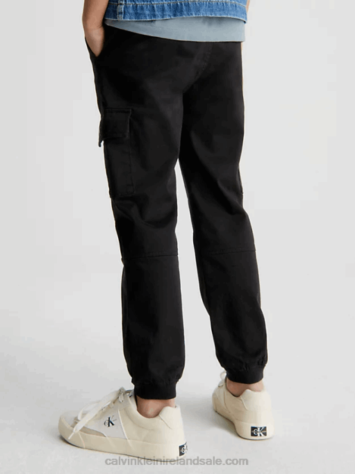 F64Z6120 Black Kids Calvin Klein Satin Stretch Cargo Trousers