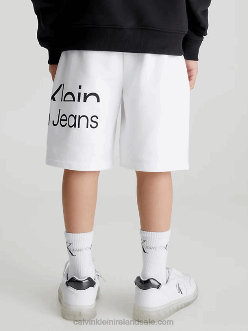 F64Z6158 Bright White Kids Calvin Klein Logo Jogger Shorts