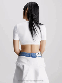 F64Z725 Bright White Women Calvin Klein Cropped Bustier T-shirt