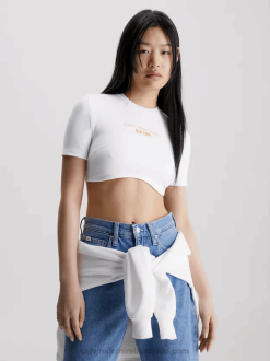 F64Z688 Bright White Women Calvin Klein Slim Cropped T-shirt