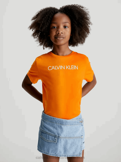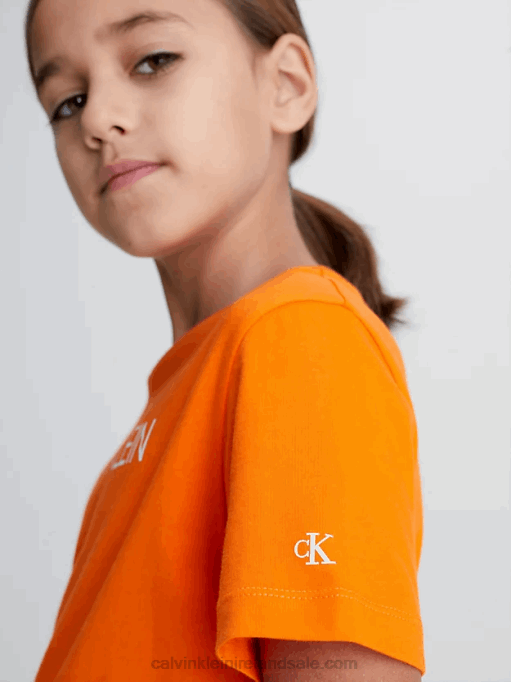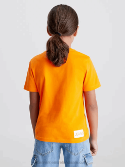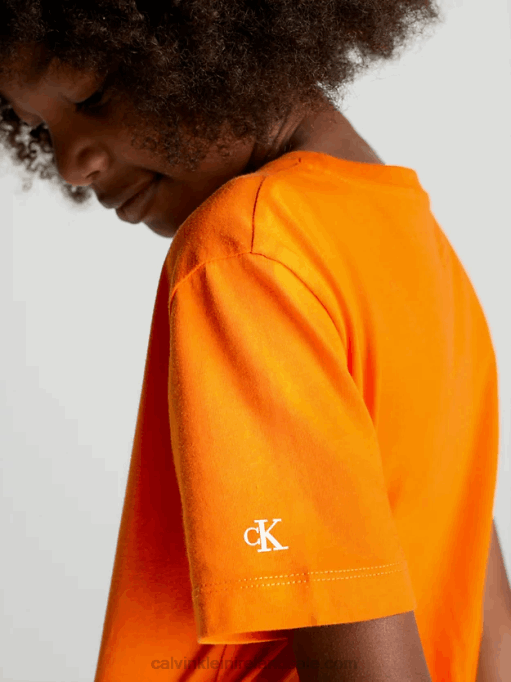 F64Z6238 Vibrant Orange Kids Calvin Klein Organic Cotton Terry Sweatshirt