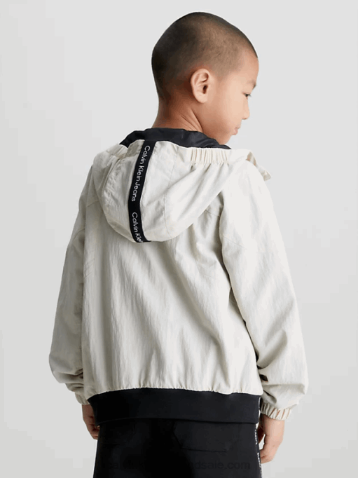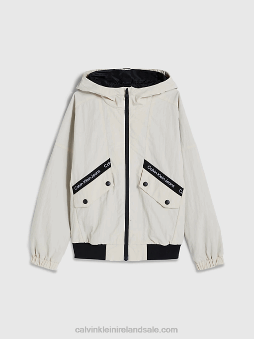 F64Z1837 Classic Beige Women Calvin Klein Cropped Embroidered Sweatshirt